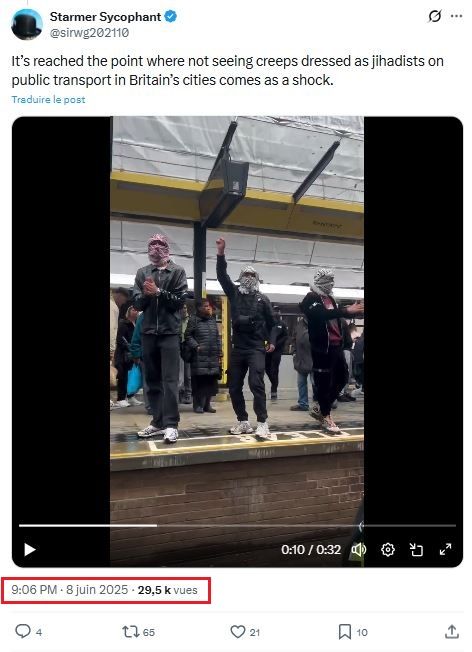 In ähnlicher Weise verbreiteten einige Nutzerinnen und Nutzer ein Video, von dem sie behaupteten, es würde eine „propalästinensische Menge in Manchester“ zeigen, „die die antisemitischen Anschläge in Australien feiert“. Darin sind Männer zu sehen, von denen einige Kufiyas tragen und während einer Demonstration singen und tanzen. Auf Facebook schrieb ein Nutzer am 17. Dezember 2025 dazu: „Ich kann es immer nicht glauben, dass Menschen sich freuen können, wenn andere zu Tode kommen und das feiern….. mitten in Europa. Macht mich fassungslos.“ Diese Behauptung wurde ebenfalls zunächst auf Englisch verbreitet und kursierte auch auf Französisch.