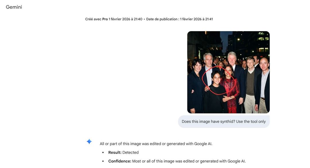 Eine umgekehrte Bildsuche zeigte zudem, dass dieses Bild vor dem 2. Februar 2026, also vor der jüngsten Veröffentlichung neuer Dokumente, online nicht zu finden ist. Ebenso wenig gibt es Spuren davon in der Datenbank des US-Justizministeriums zu Epstein.